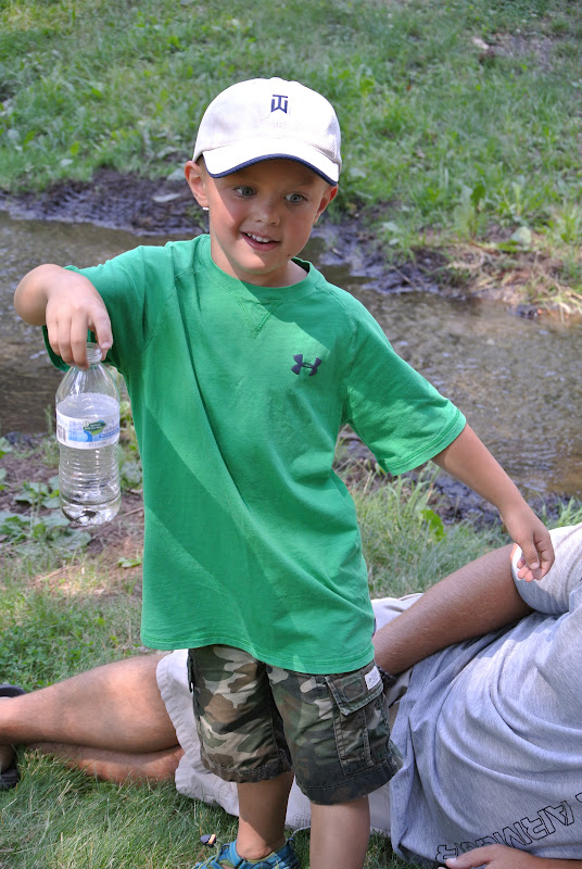 They also caught tadpoles, frogs (Colt had 5 frogs that he let go in that water bottle) and snakes (ewww).